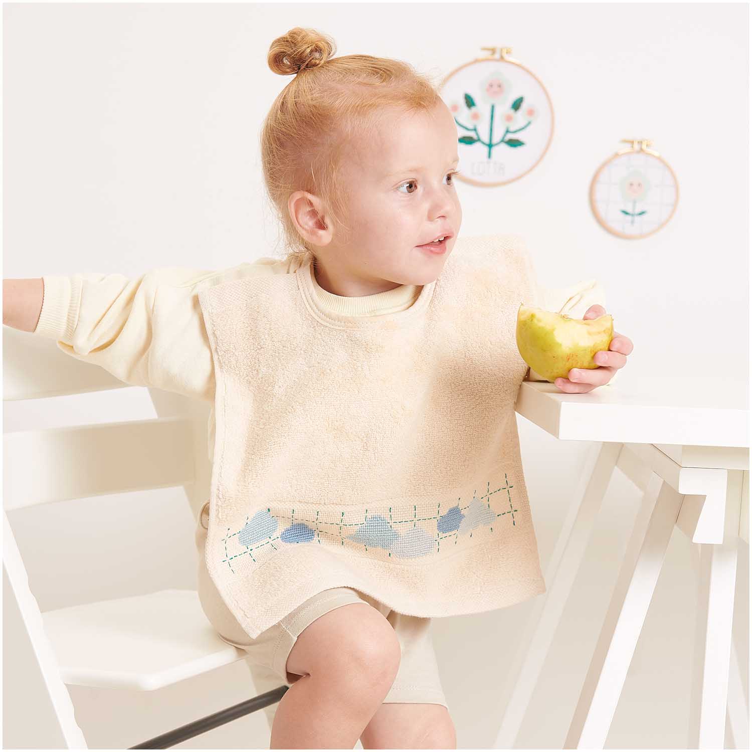 Bryndáček na který lze vyšít vlastní výšivka. Skvěle uchrání oblečení před jídlem, při prvních soustech. Ve spodní části bryndáčku je možná vlastní výšivka. Skvělé například jako dárek k narození miminka či k narozeninám.