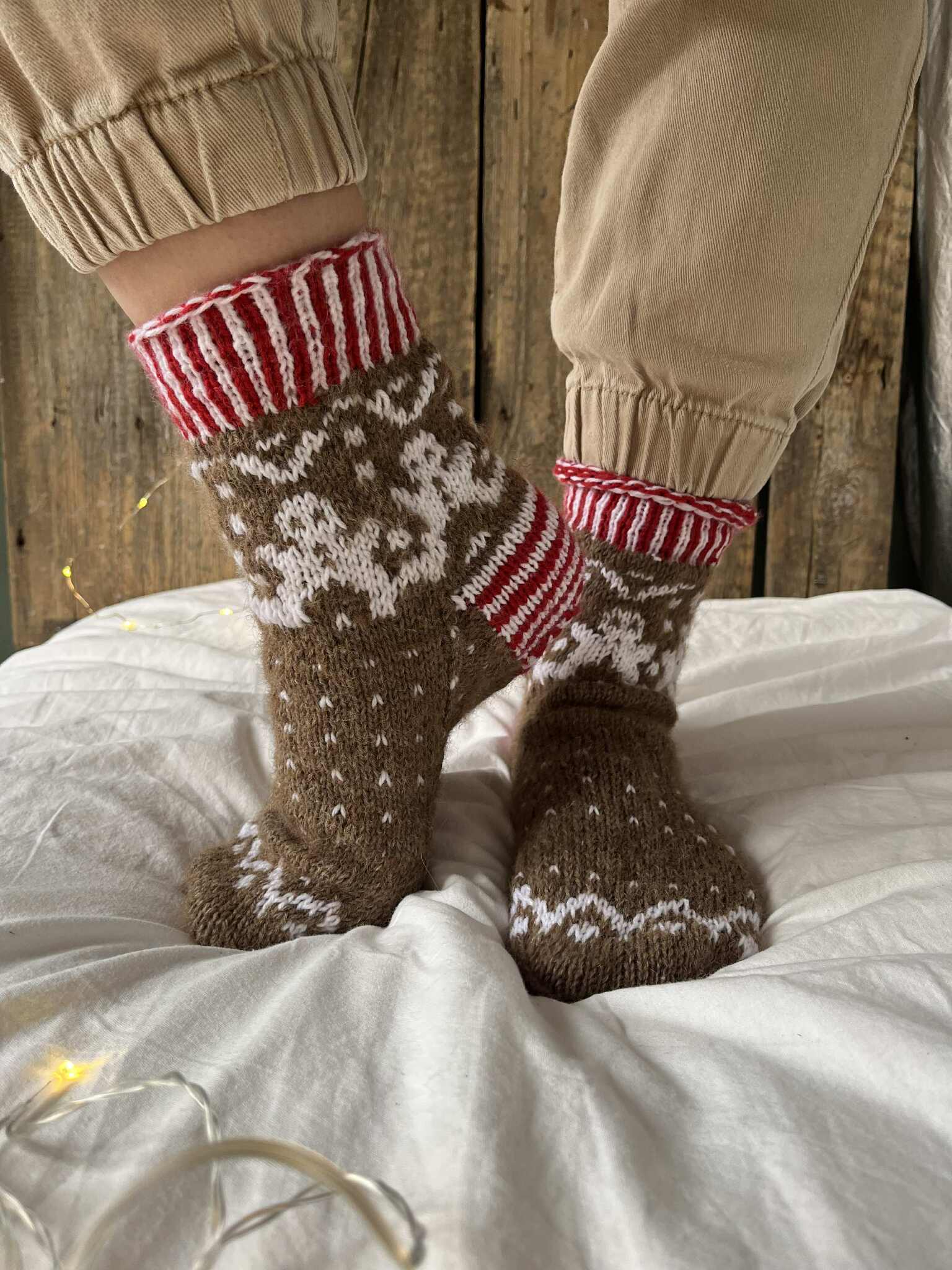 Set 3 přízí na upletení perníčkových ponožek. Návod najdete ve vánočním čísle časopisu Dekor 2025.