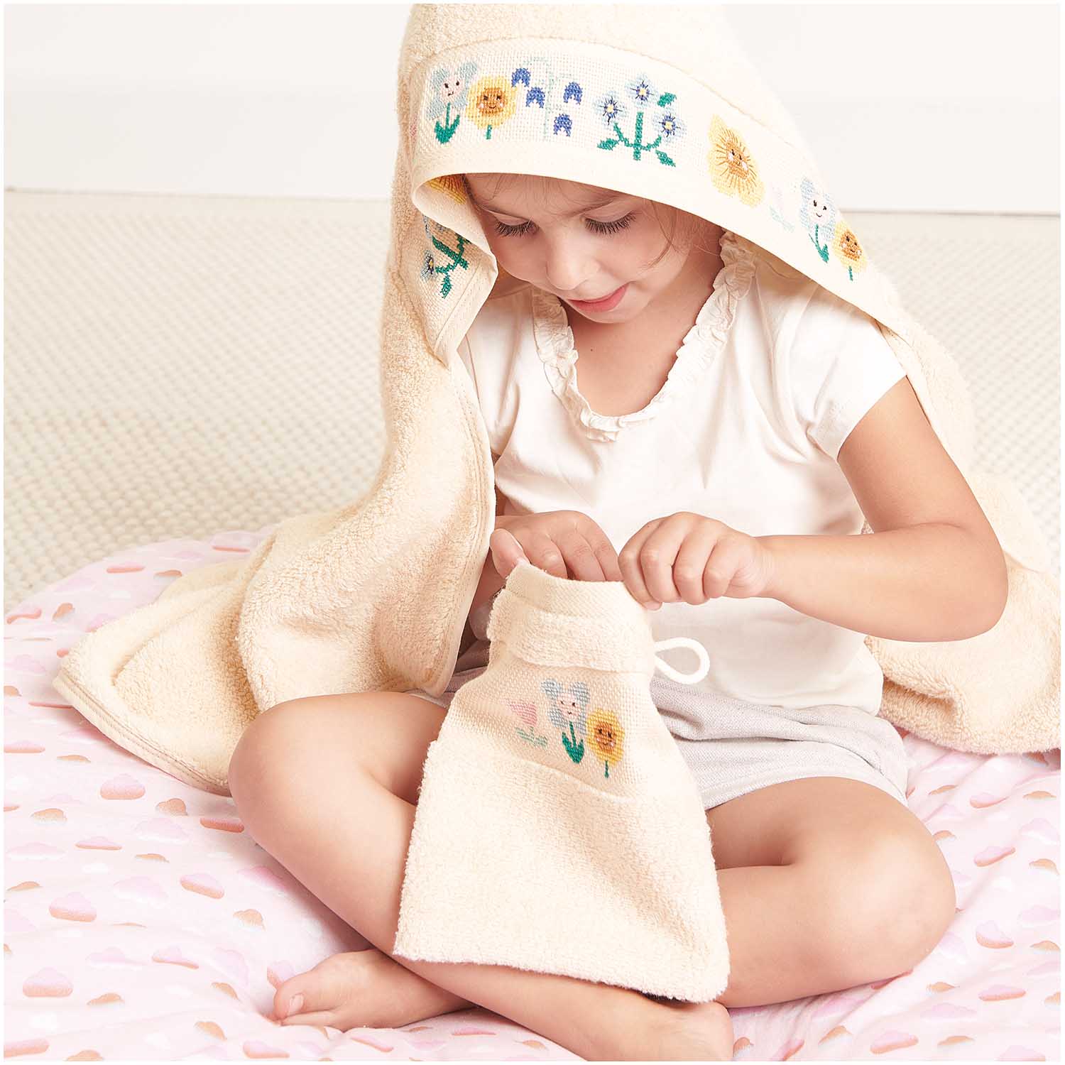 Krásná a příjemná žínka na mytí. Ve spodní části se nachází prostor pro vlastní výšivku.