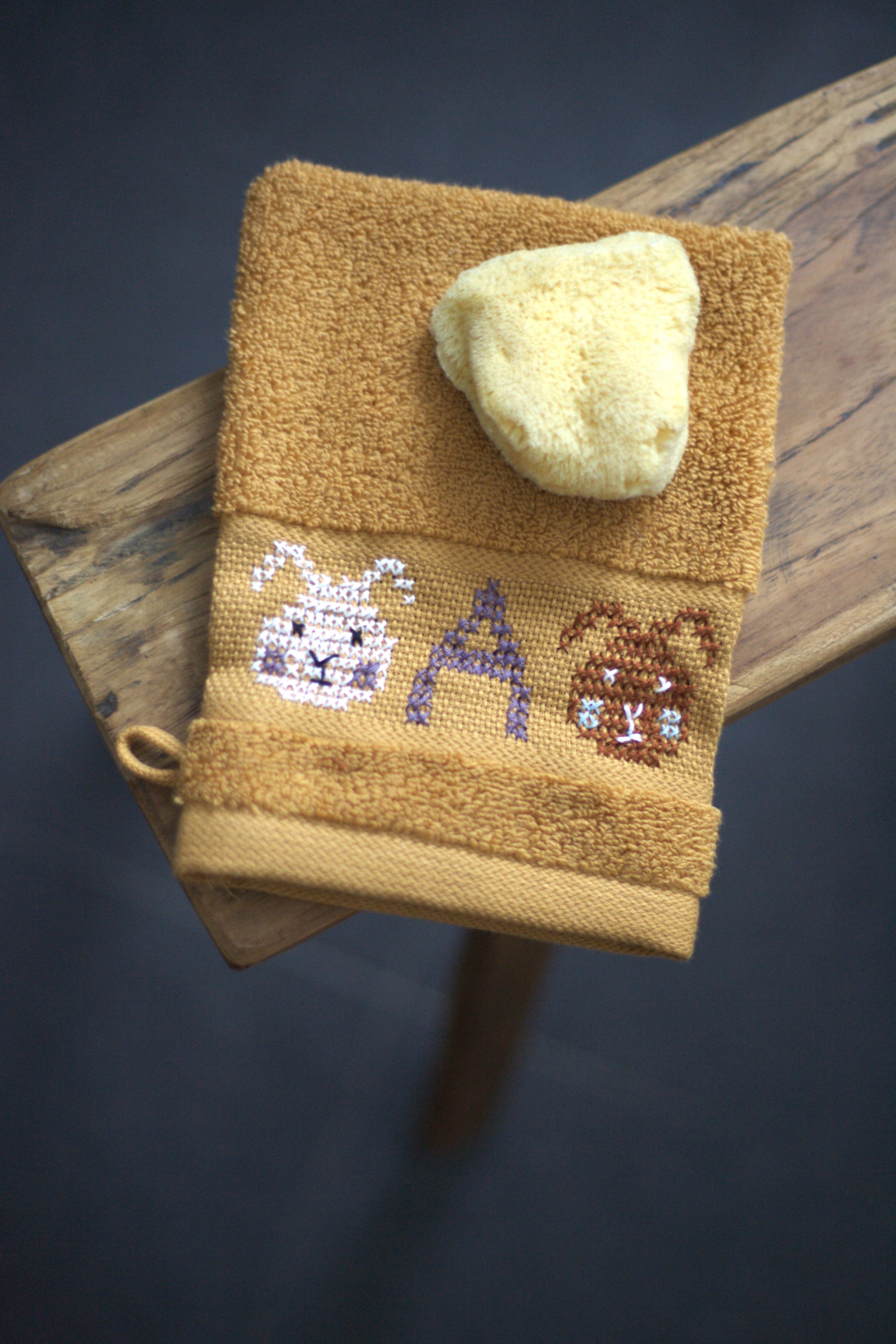 Krásná a příjemná žínka na mytí. Ve spodní části se nachází prostor pro vlastní výšivku.